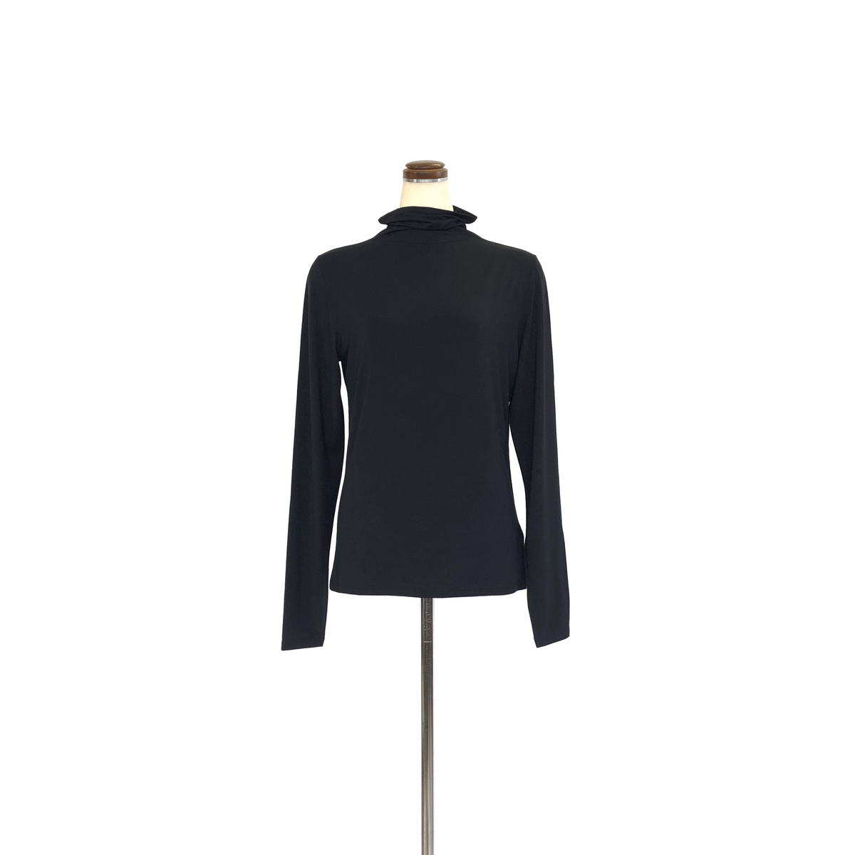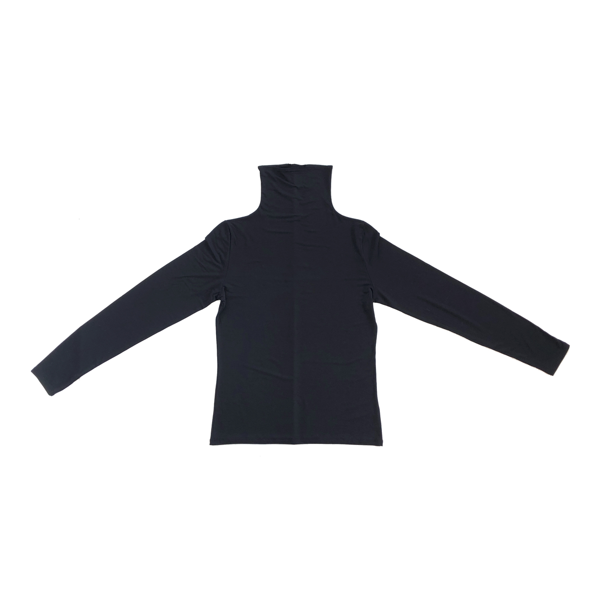 トロッとした気持ちの良い肌ざわりと、ストレッチが効いた素材で、シアーなアイテムが多いサラパチーニのニット製品のみならず、様々な秋冬アイテムのファーストレイヤーにぴったりなフルスリーヴTシャツ。ファネル・ネック仕様で首元もゆとりをもってカバーしていただけます。ご家庭医で手洗いしていただけるので、秋冬のインナーとして大活躍してくれる1枚です。