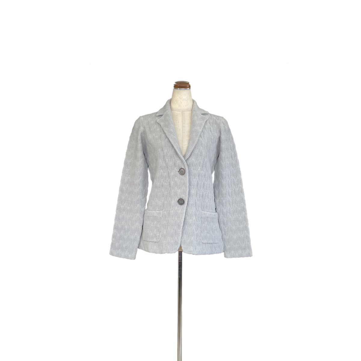 思わず手を触れたくなる、柔らかなパイル編みメリノウール・ジャケット。天竺編みのような模様が立体的にパイル編みで表現されており、TONETの芸術的なニット技術が存分に発揮された表情豊かな1着です。