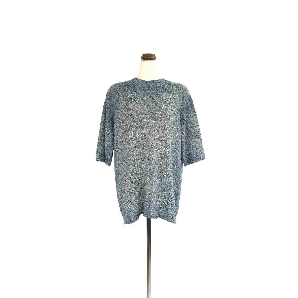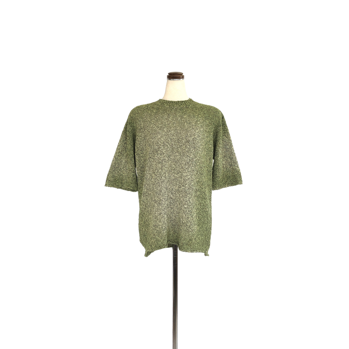 爽やかなメランジ・サマーニット。襟元は濃く、胸元は薄くと、絶妙に色の濃淡があるので、より立体感生み出します。コットン素材の緩やかな編み目で通気性もよく、軽やかでエレガントな印象に。