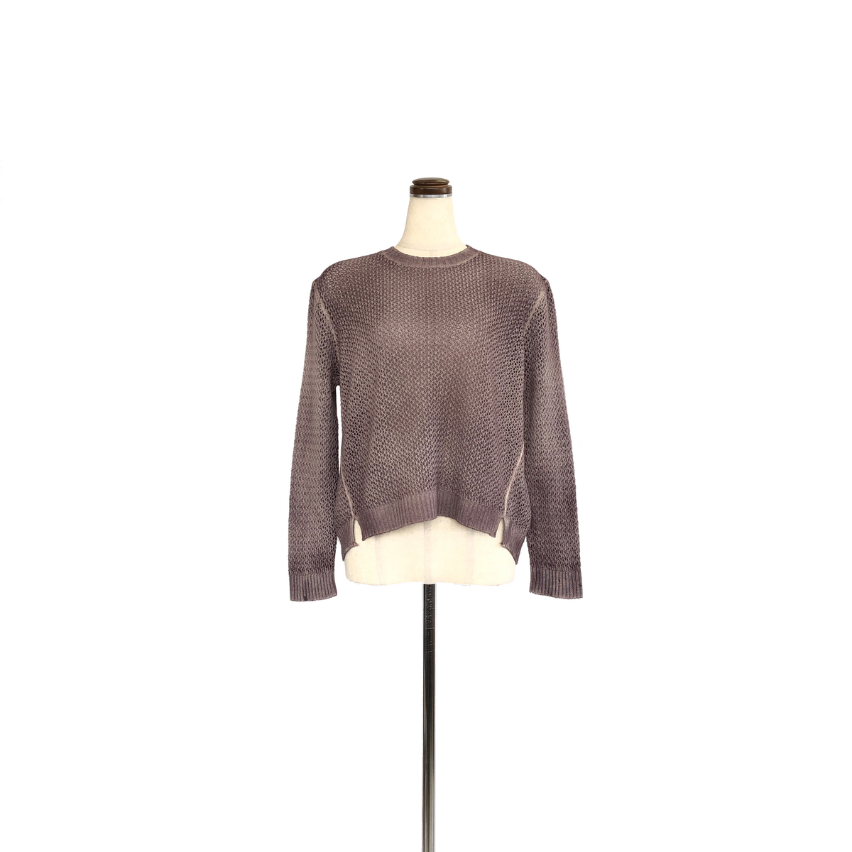 シアー・サマーカシミヤニット。深い陰影と濃淡の芸術的なラベンダーカラー。すらっとした印象のクロップド丈は前後アシンメトリーヘム&サイドスリットでより軽やかな印象に。カシミヤニットの名門AVANT TOIならではの、サマーカシミヤニットです。