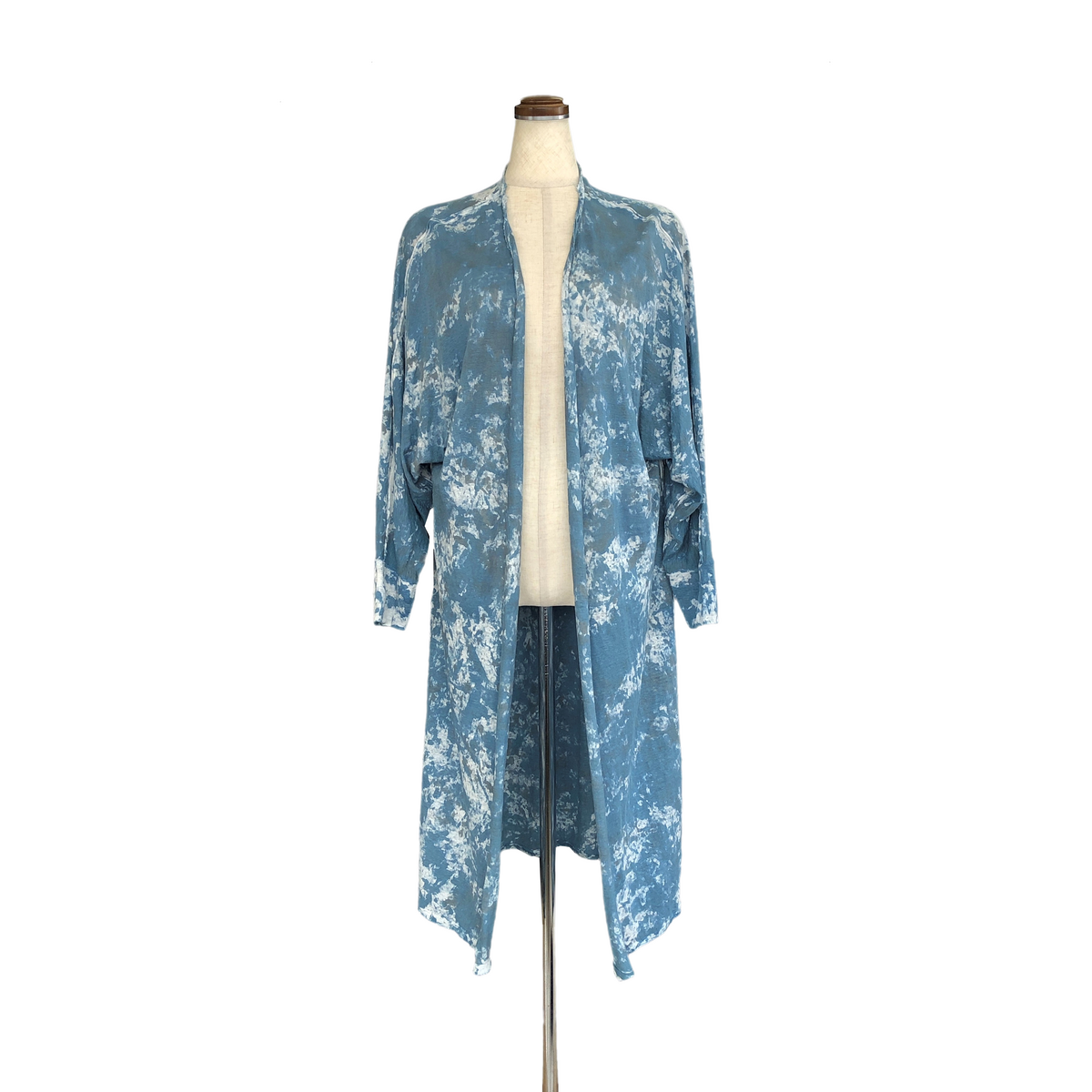 白波立つ海を彷彿させるカモフラージュエフェクト・ロングカーディガン。夏の暑い日差しにも負けないサラッと着心地の良いリネン素材を使用し、ホワイトのインナーの上にざっくり羽織っていただくだけで、とても雰囲気が出る1枚。首から袖にかけての切り替えがデザインのアクセントに。
